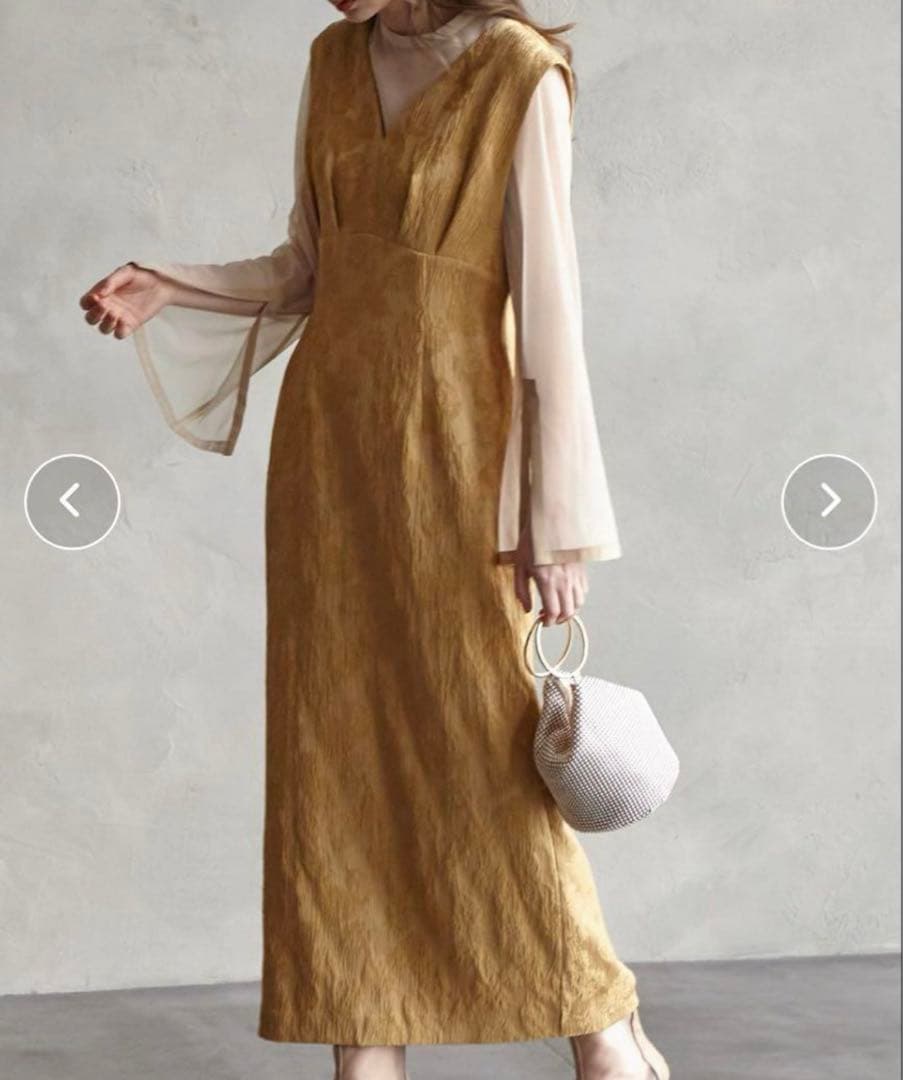 【お気にいる】 バブルスリーブジャガードドレス ロング バブルスリーブジャガードドレス MT ANDRESD / dress jacquard sleeve bubble スーツ・フォーマル・ドレス
