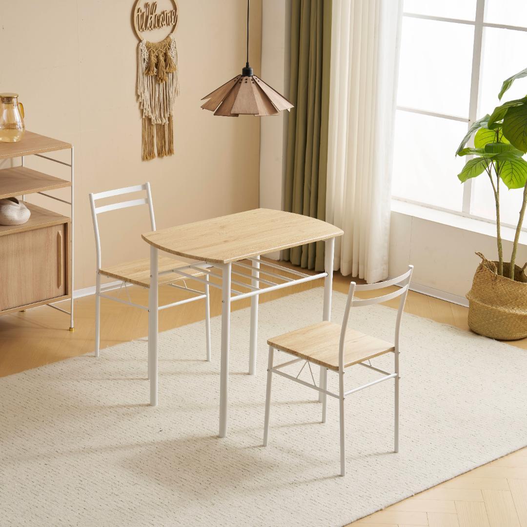 - 09/2/7日に到着しました。 女性でも付属の6角レンチで簡単に組み立てる事が出来、材質的にも機能的にも満足です。結構待ったのでそこだけがマイナス★1つ。 *** 2人暮らし・偶に親や知人が来るかも(若しくは、将来家族が1人増えるかも)・臨機応変に使えるバタフライテーブル・回転チェア・手頃価格を考えたら、こちらのダイニングテーブルセットに辿り付きました。現在在庫切れの予約注文にて次回入荷12中旬〜1月上旬頃の予定と記載されているので気長に待ちます。 他にライトブラウンのカラー、別バージョンでマガジンラック付のタイプもあるみたいです。
